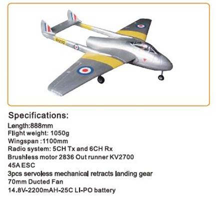 Then I built a similar retractable gear for Durafly D.H. 100 Vampire MK 6.